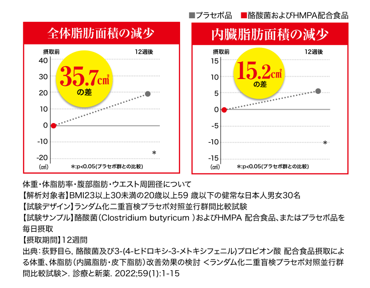 ※肥満気味の方の酪酸菌とHMPAの同時摂取が体重減少をサポートすること